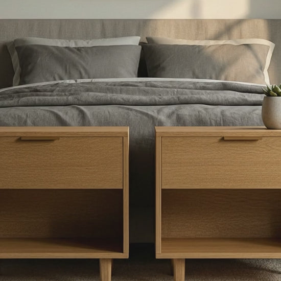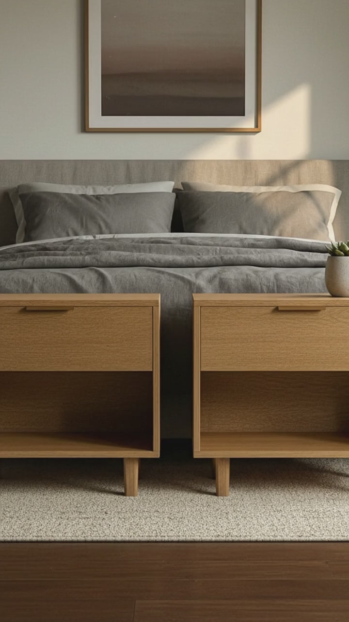 3. Premium Materials: We use only the finest sustainable hardwoods and finishes, ensuring durability and a rich, natural grain. Our wood is selected for its beauty and longevity, providing a sturdy foundation for your bedside essentials.